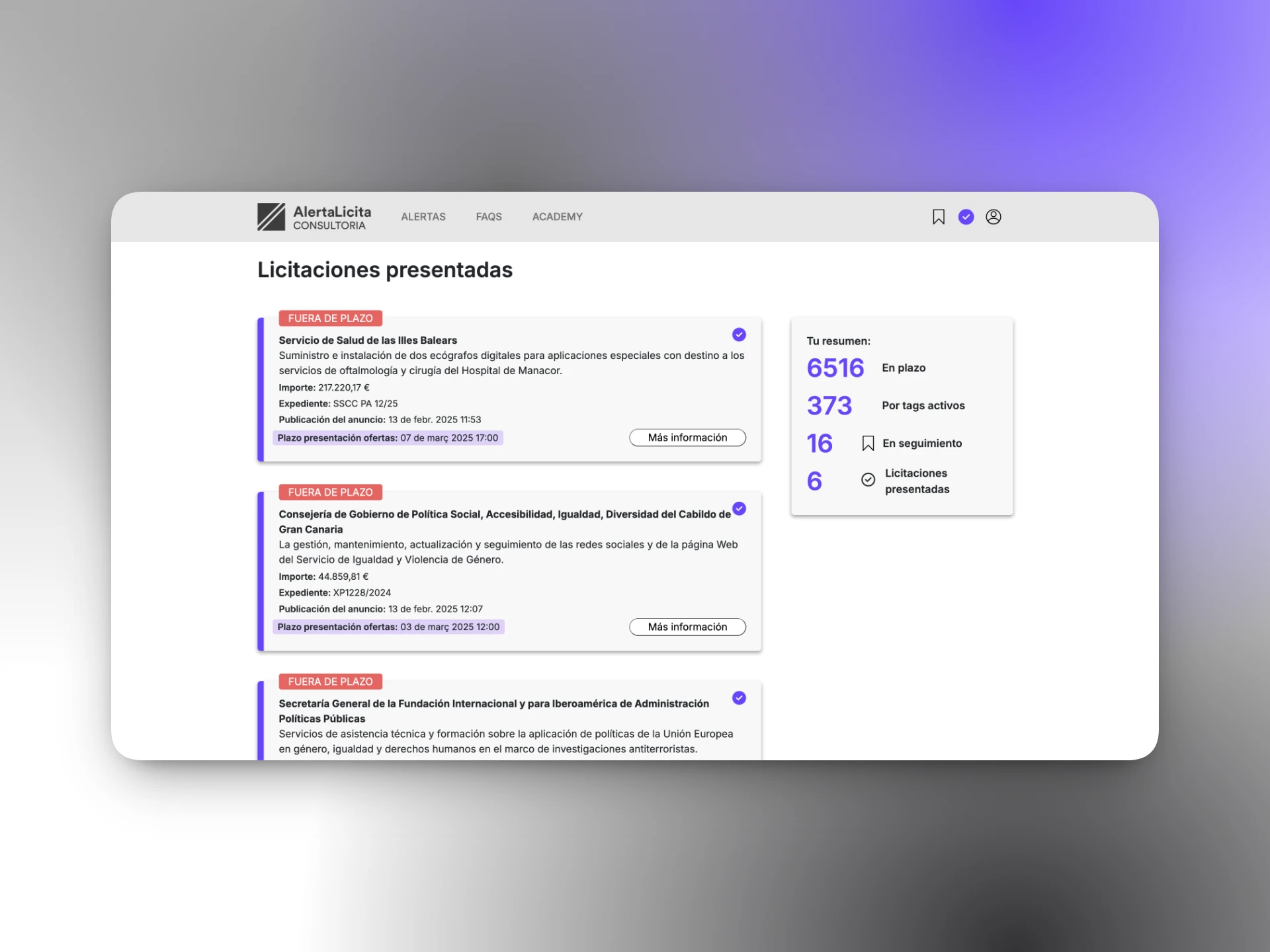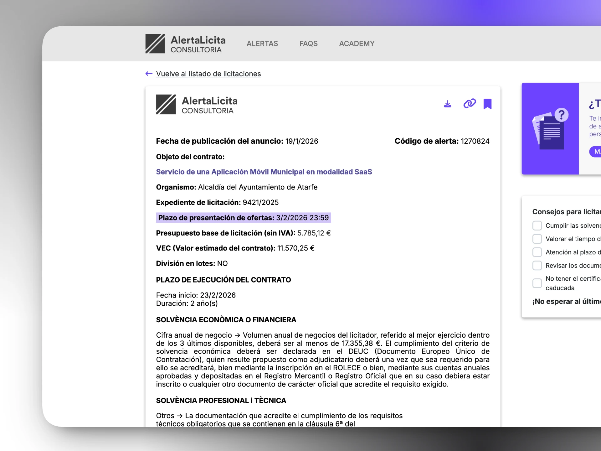 Configura els teus propis tags i alertes perquè l’app faci la feina bruta per tu. En lloc de revisar milers de portals, ALERTA et porta només el que t’interessa al teu radar. Pots entrar als detalls de cada oferta i entendre-ho tot a la primera, sense haver de desxifrar documents impossibles.